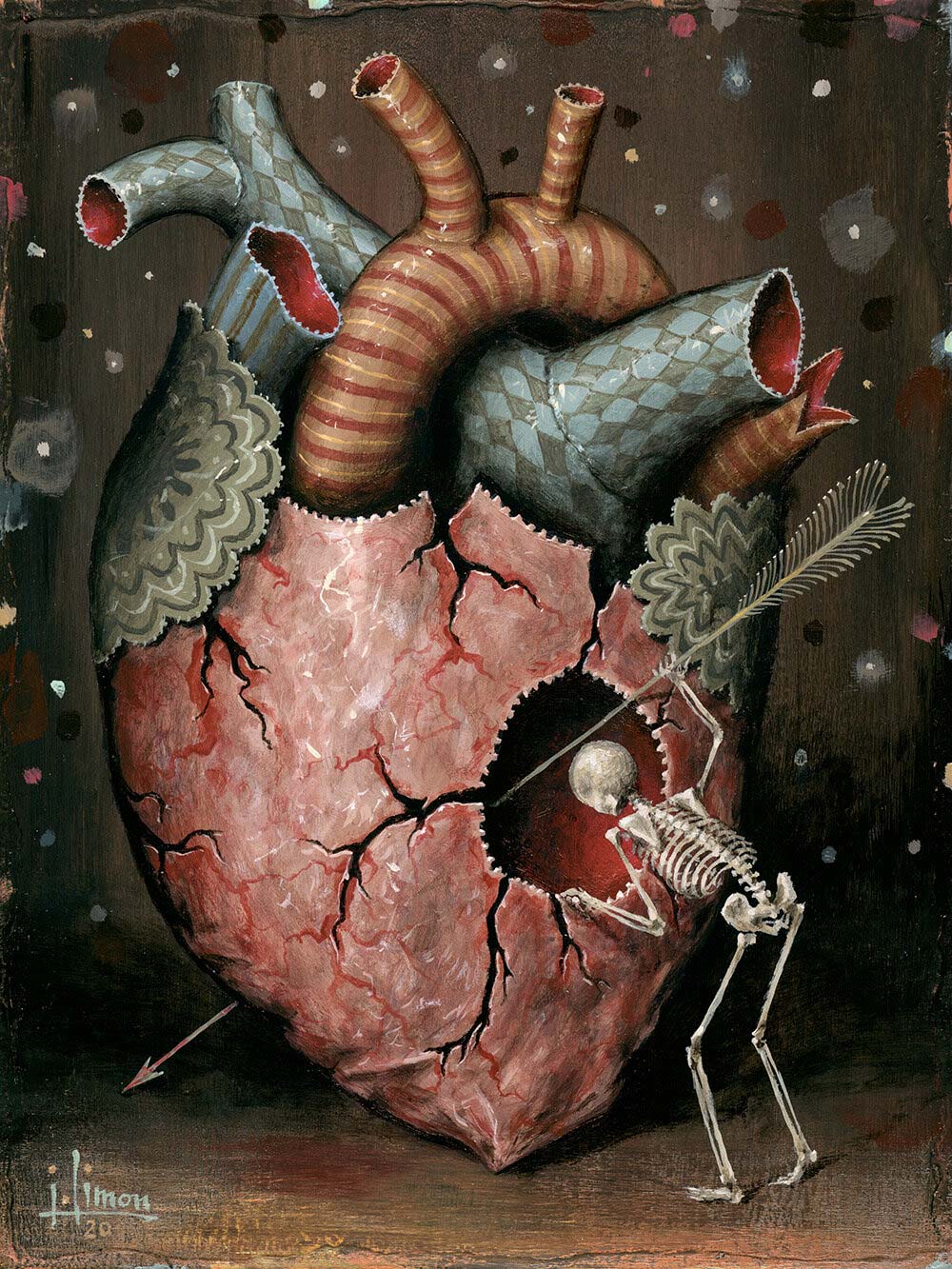 Jason Limon es un pintor y escultor nacido en San Antonio, Texas. Estudió bellas artes y diseño gráfico en el Centro de Artes Visuales y Tecnología de San Antonio College e ingresó al campo del diseño gráfico comercial en 1995, adquiriendo un conocimiento integral de tipo, color y composición. Después de doce años de compromiso con la producción de logotipos y diseños galardonados, dirigió su enfoque y concentración hacia donde realmente comenzó su corazón: desarrollar obras de arte a mano y con pincel, ya no con los clics del mouse.
