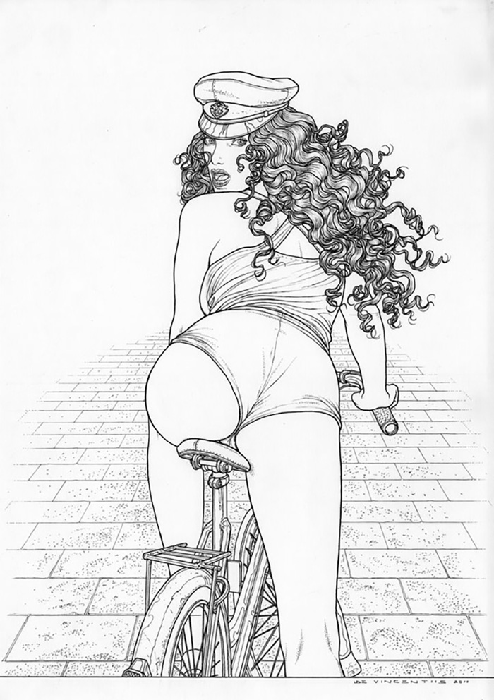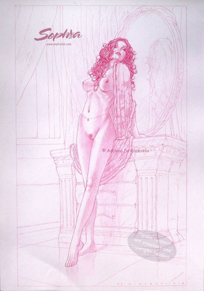 Adriano De Vincentiis es un artista cuyo trabajo nos recordará sin duda a los grandes maestros de la ilustración erótica como Milo Manara, Guido Crepax, Fernando Fernandez, Pepe Gonzalez o Esteban Maroto entre otros muchos, y sin duda su influencia es clave en toda su obra, lo que de ninguna manera hace que su trabajo no nos resulte interesante y atractivo. Nacido en Terrano y actualmente residiendo en Grottammare, Italia, ha publicado varios libros de cómics. Sobre todo con su serie “Sophia”.